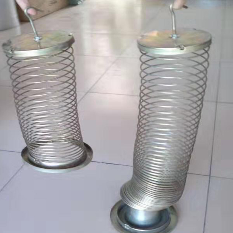 彈簧骨架具有一定的伸縮性,是外濾式除塵器必備的除塵器配件。彈簧骨架是采用直徑為5毫米的鋼絲盤繞而成,直徑為小于130毫米,伸張后為35圈/米,表面鍍鋅處理.